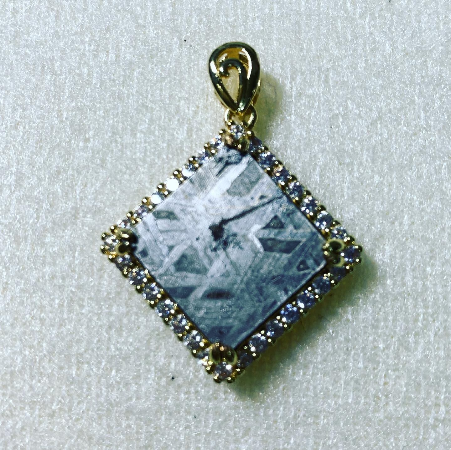メテオライトは、宇宙から地球へ飛来した隕石の総称です。地球でも存在する成分で構成されていますが、割合や結びつきが異なる為、地球で産出される鉱物とは全く違う石です。メテオライトは、特殊な網目模様の「ウィドマンシュテッテン構造」を持つのが特徴で、成長過程において冷却する期間がゆっくりと経過することによりニッケルが結晶化して分離するのですがその切断面を酸でエッジングし研磨すると、神秘的な「ウィドマンシュテッテン構造」が現れます。その冷却期間がおよそ100万年に1℃というスピードですので、人工的にこの模様が作られることは不可能である事が科学的に立証されています。