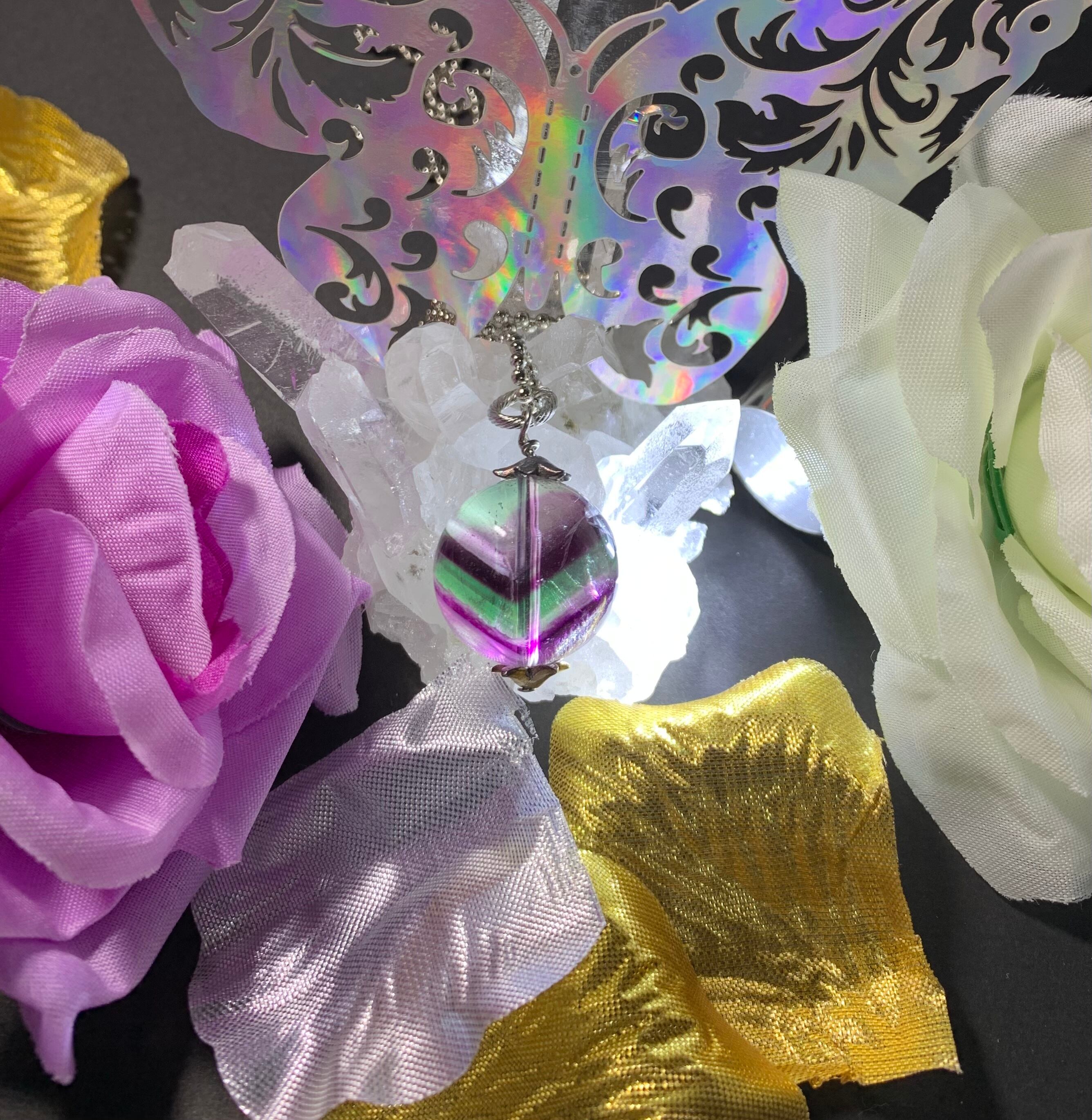 【天然石のパワーを身にまとう】フローライトの美しい大玉ネックレスをご紹介します。フローライトは、その鮮やかな色合いと透明感が特徴で、パワーストーンとして人気を集めています。そんな魅力溢れるフローライトを使用したネックレスは、身につけるだけで周囲のエネルギーを浄化し、ポジティブな気持ちで過ごすことができます。一粒一粒丁寧に作られた大玉は、存在感抜群で華やかな印象を与えます。  【天才の石】フローライトは、その美しさだけでなく、驚異的な効能も持っています。集中力や洞察力を高め、クリエイティブな発想を引き出すと言われています。また、心のバランスを整える効果もあり、ストレスや不安を和らげる効果も期待できます。そのため、仕事や勉強に集中したい方や、自己成長を目指す方に特におすすめです。  【迷ったらフローライト】日常の慌ただしい生活の中で、時に迷いや疲れを感じることもあるかと思います。そんな時は、フローライトの力を借りてみませんか?美しく磨かれたネックレスが、あなたの胸元からパワフルなエネルギーを放ち、自信と幸福感をもたらしてくれます。天然石の中でも特別な存在感を持つフローライトを、ぜひあなたのおしゃれに取り入れてみてください。