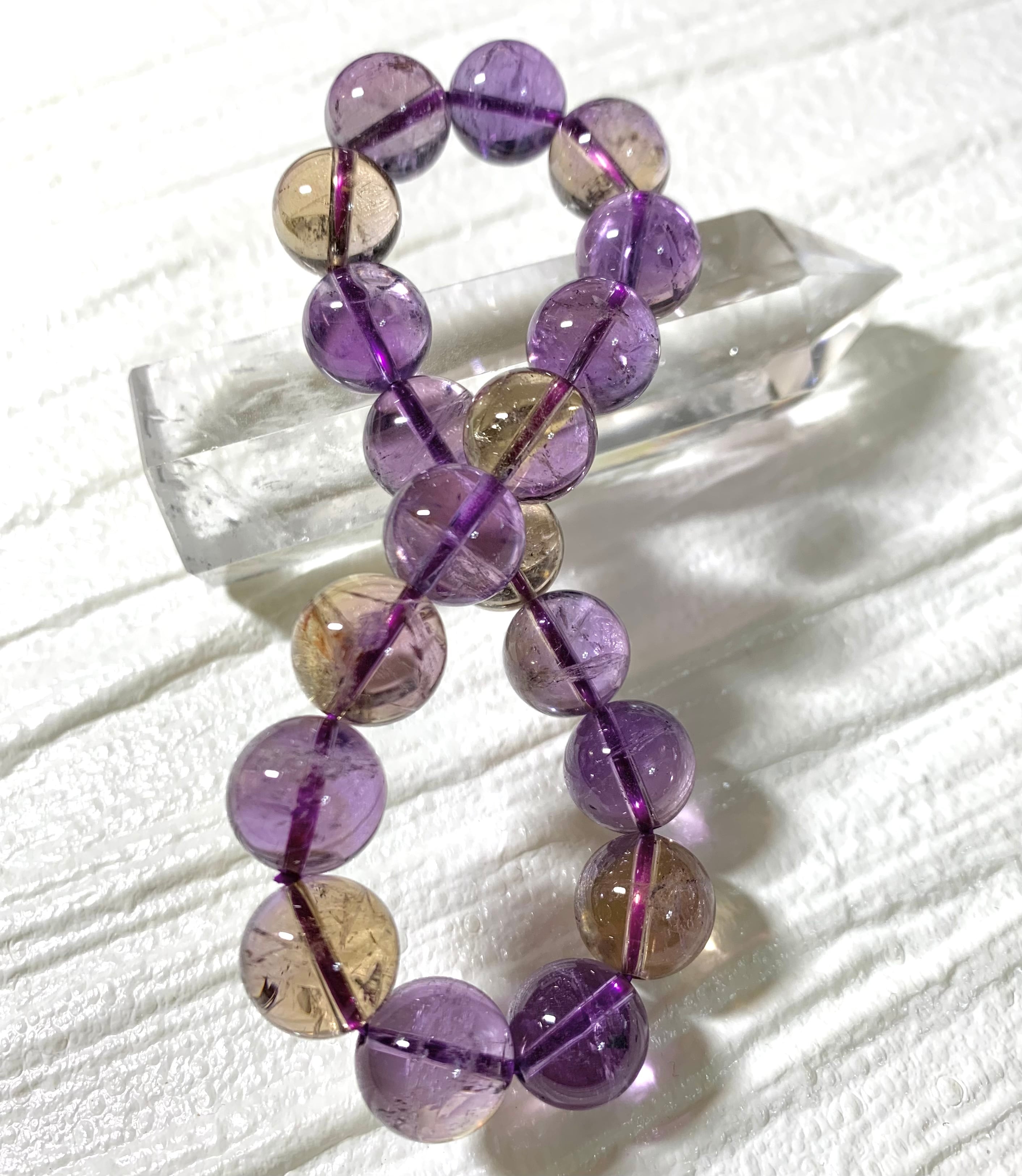 虹の見える石や、なかにはアメトリンの珠が入っていることも♪