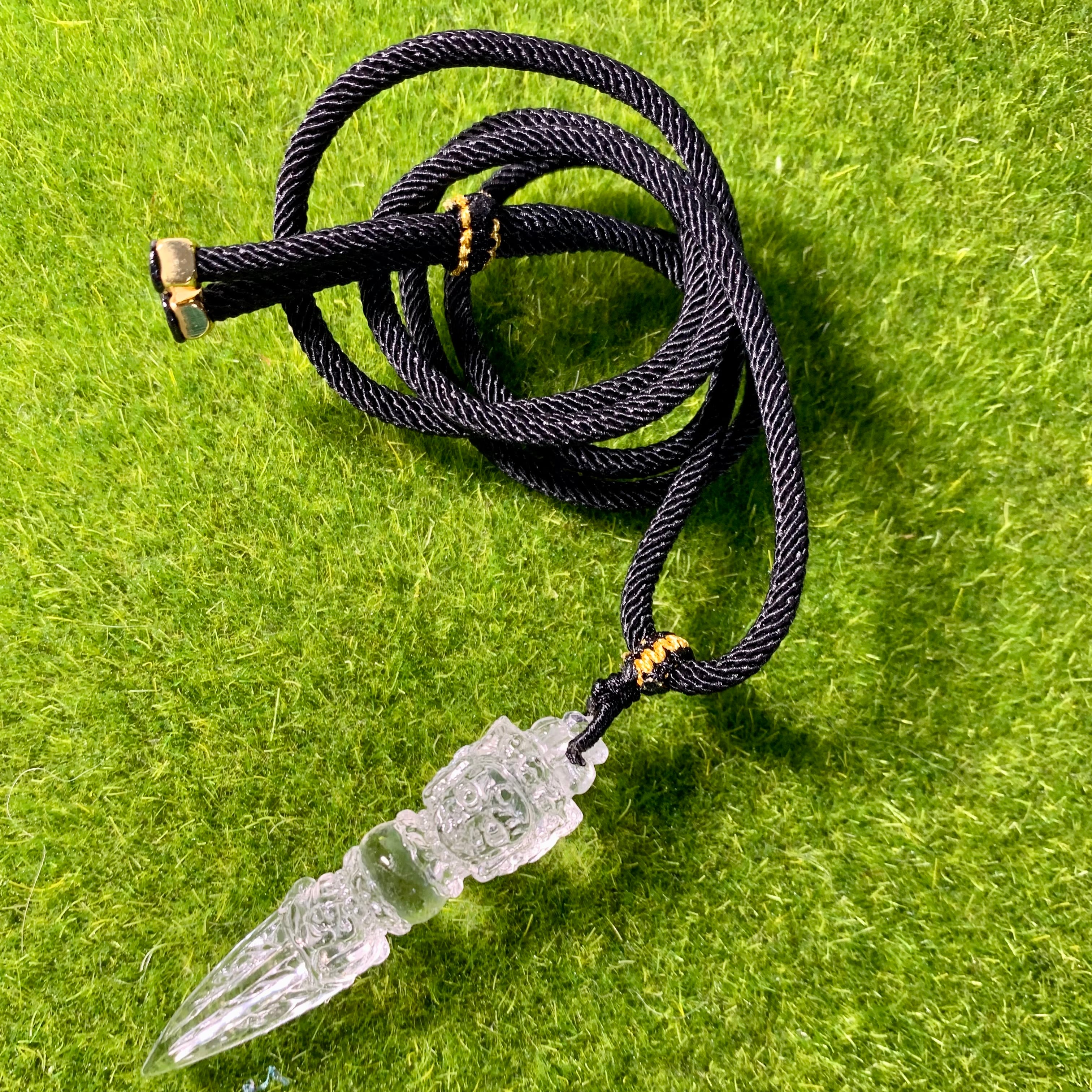 密教法具の金剛杭(=プルパ)で悪を断ち切ると同時に結界を作り、ネガティブなエネルギーや邪気などを入り込ませないようにする仏の持つ刀です。