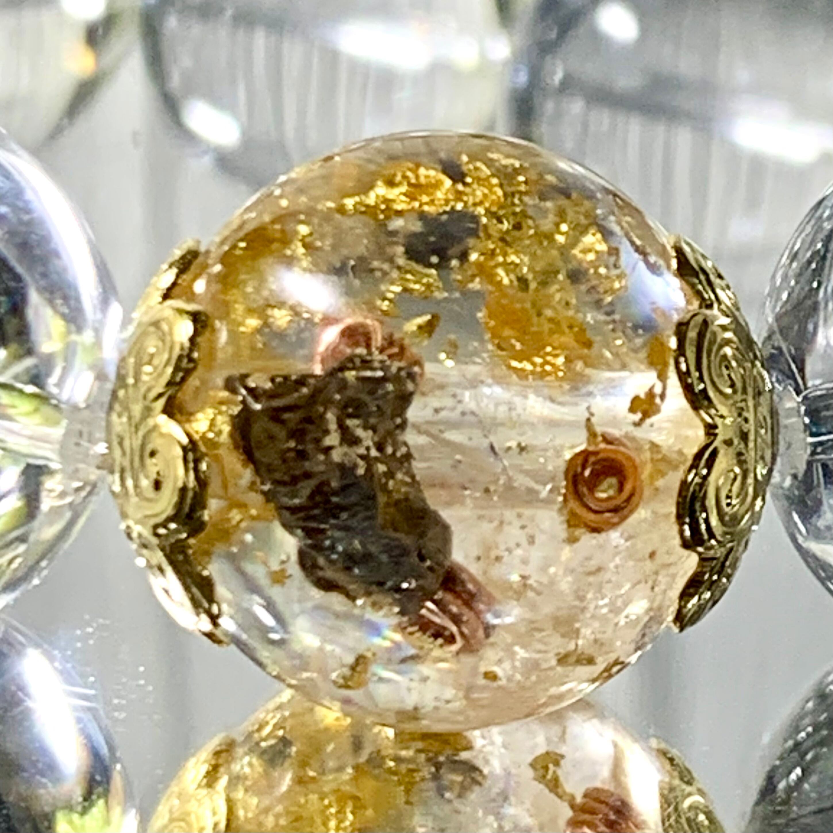 水晶のと隕石入りオルゴナイトの球で、浄化作用はバッチリです