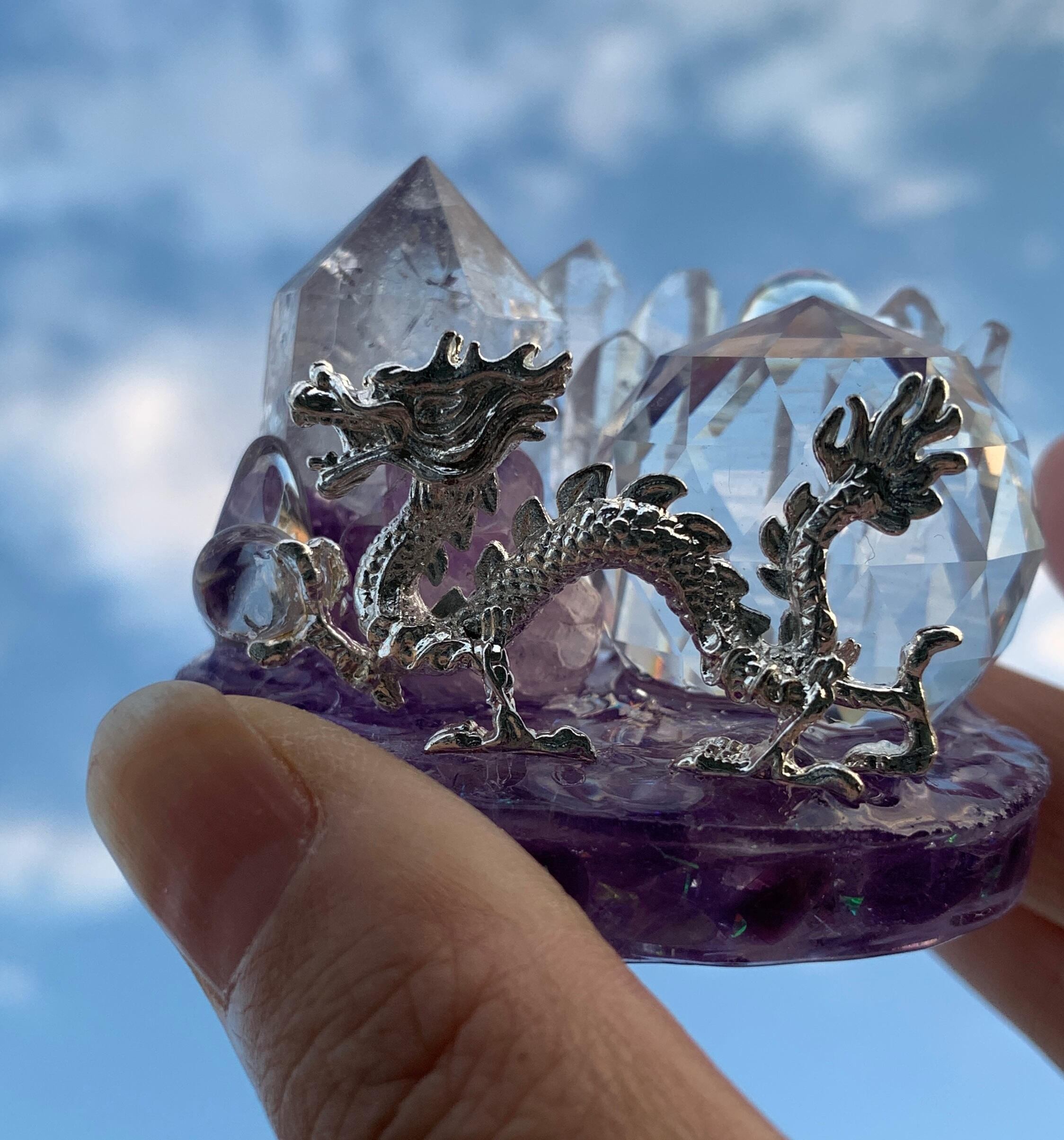 ◇宇宙を駆ける銀の龍◇オルゴナイト◇オブジェ◇アメジスト ヒマラヤ水晶